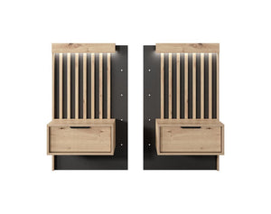 Enhance your bedroom with this elegant pair of bedside tables, beautifully finished in a combination of Oak Artisan and Anthracite. Offering modern style with practical storage, each unit features a spacious drawer and open space for everyday essentials. Perfect for creating a coordinated and contemporary bedroom setup.