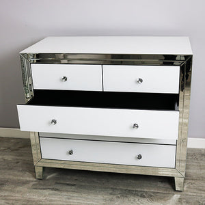 Set off some Hollywood glamour with the Bianco two and three chest of drawers. Framed in glass for an elegant finish, this chest of drawers is a must have storage solution with a wipe clean glass finish.