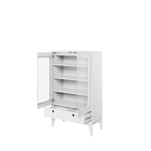 Bring an element of sophistication, grace and chic to your interior with the Femii FE-08 display cabinet. Finished in the minimalist white matt colour scheme, this gorgeous cabinet will effortlessly blend in any modern or contemporary decor. It is made from 16mm laminated board with two partially-glassed hinged doors, three shelves and a pair of drawers for storage.