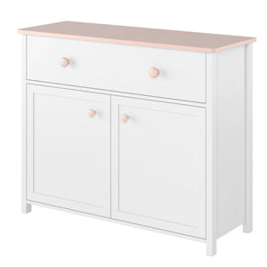 Presenting LN-05, a spacious sideboard cabinet that will effortlessly blend itself in any interior. Highly attractive in aesthetics, it is available in two colours -white matt & light pink– to match with more or less any decor if it is created to be used for a child's bedroom. This stunningly crafted furniture piece features two hinged doors and one large drawer, perfect for storing a range of different items.